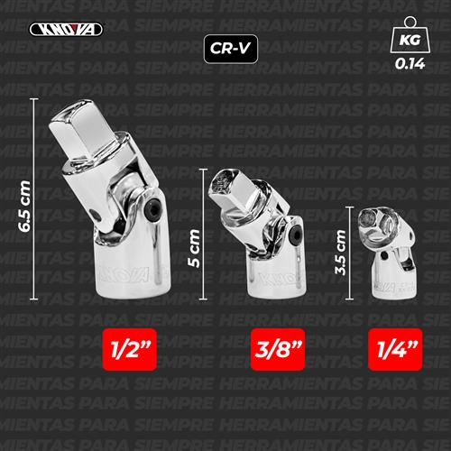 JGO. C/3 NUDOS UNIVERSALES 1/4" 3/8" Y 1/2"